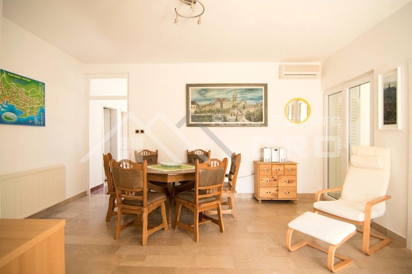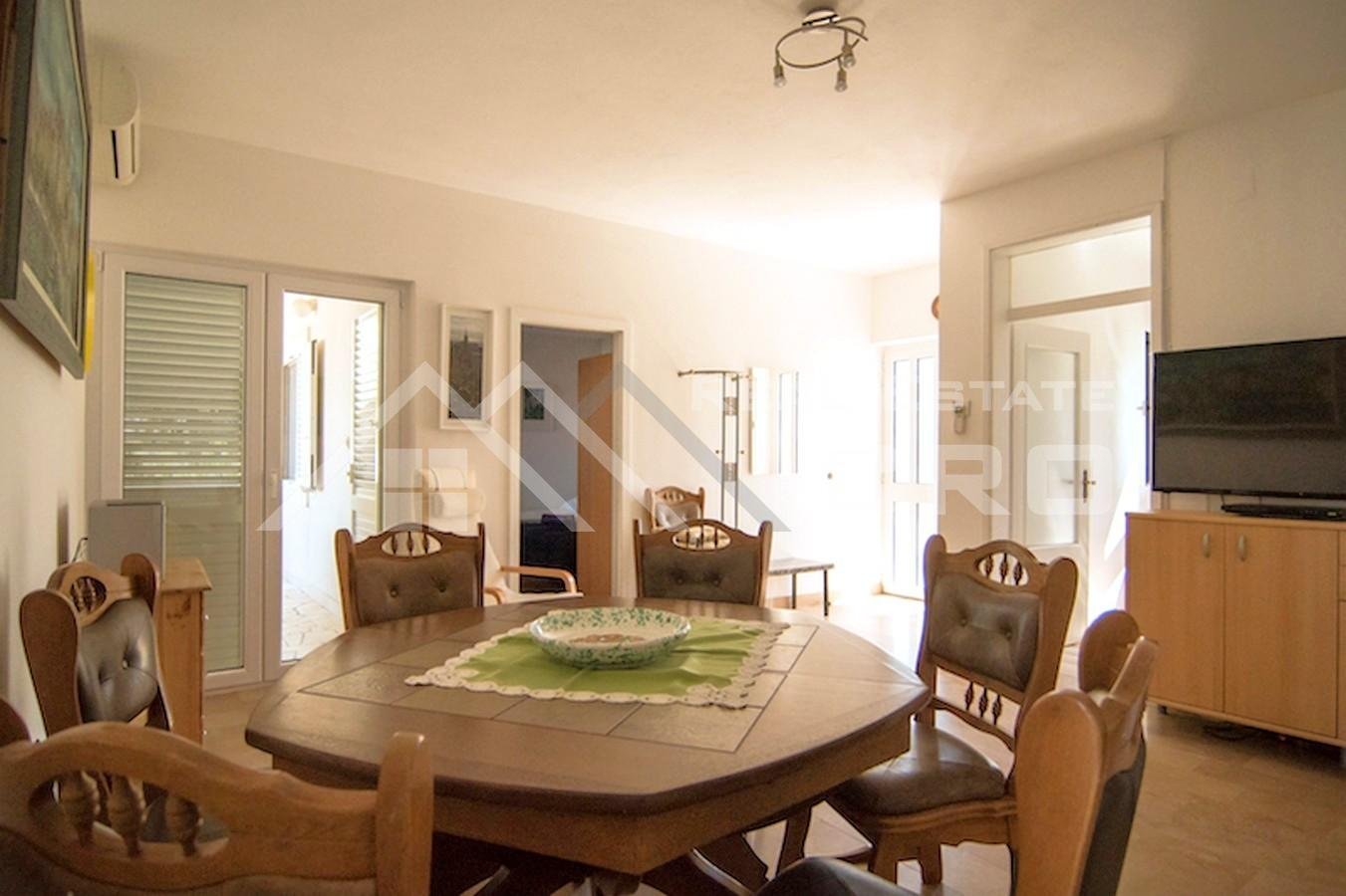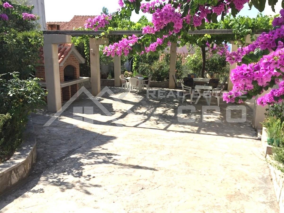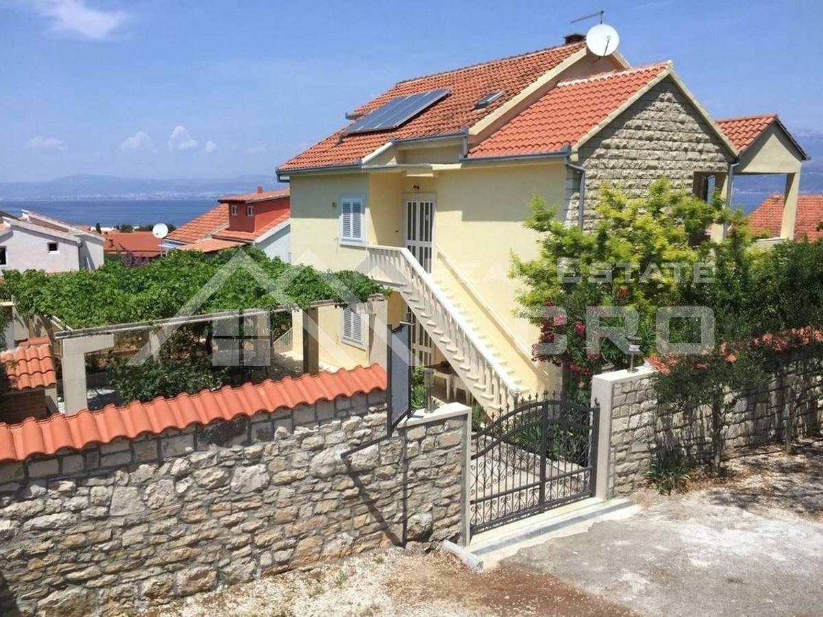 The house is situated on a plot of approx. 640 m2 and extends over three levels with a total area of around 266 m2, with the possibility of adding another level, for which a project has already been prepared. The property contains four furnished and fully equipped apartments. Two larger apartments feature three bedrooms and two bathrooms each, while the remaining two smaller units are arranged as a studio apartment and a one-bedroom apartment. The larger apartments on the ground floor and first floor have access to terraces and balconies with sea views. All apartments are air-conditioned and ready for use. Parking for up to six cars is provided in front of the main entrance.