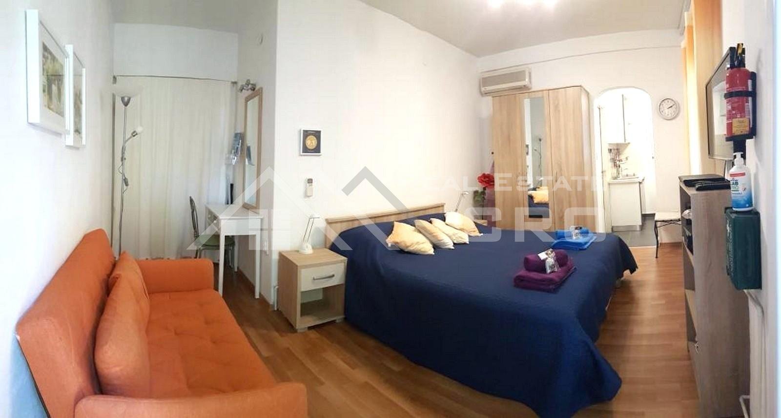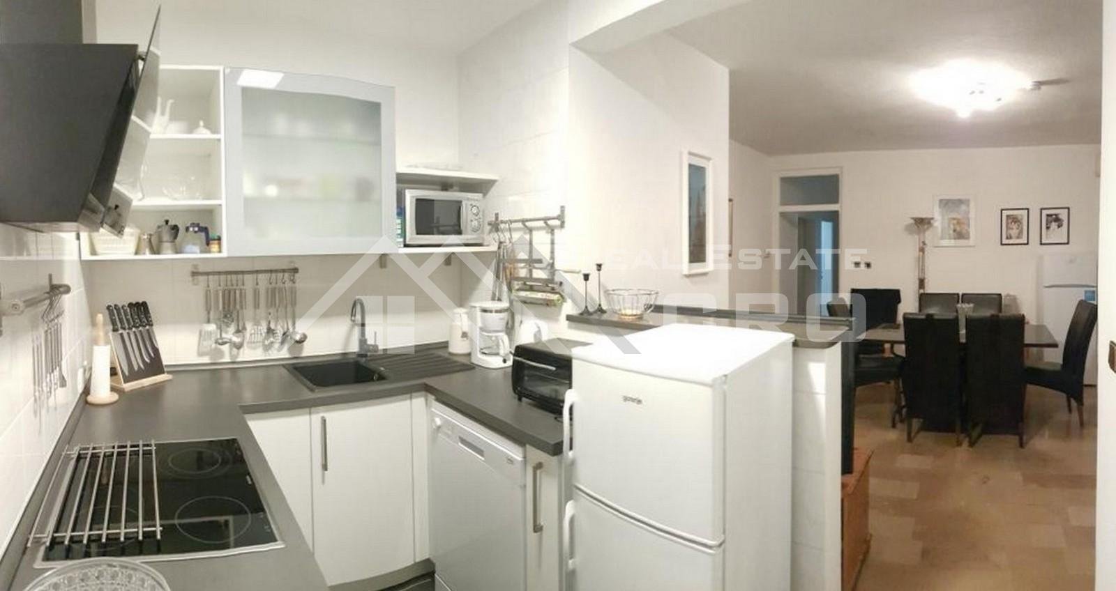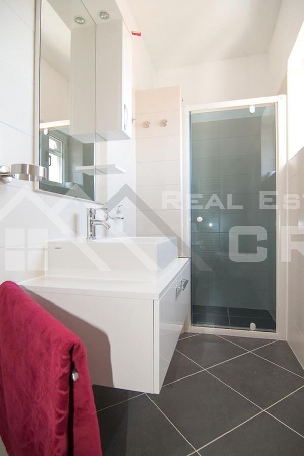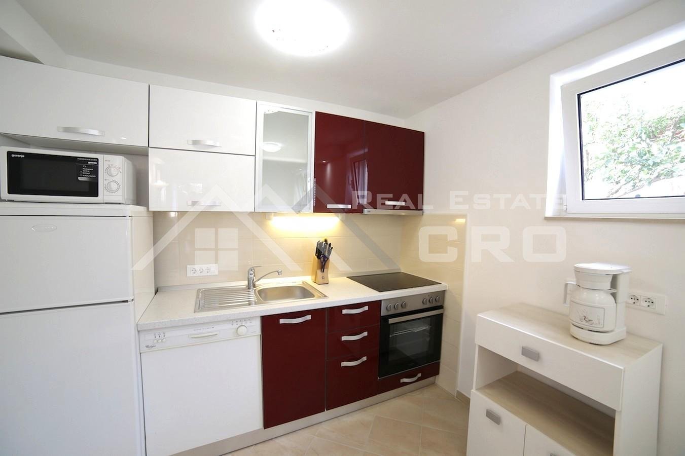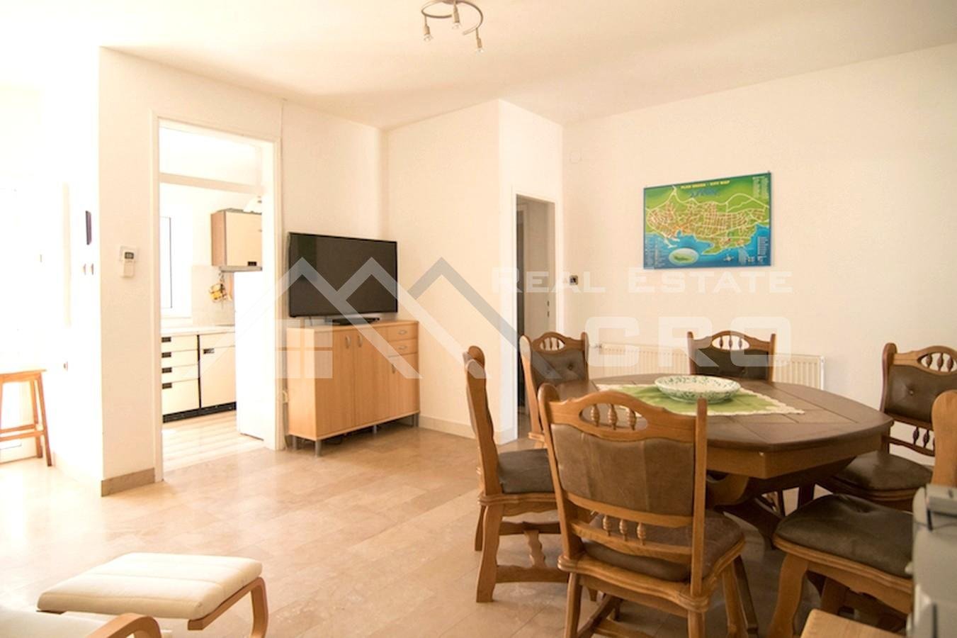 The house is situated on a plot of approx. 640 m2 and extends over three levels with a total area of around 266 m2, with the possibility of adding another level, for which a project has already been prepared. The property contains four furnished and fully equipped apartments. Two larger apartments feature three bedrooms and two bathrooms each, while the remaining two smaller units are arranged as a studio apartment and a one-bedroom apartment. The larger apartments on the ground floor and first floor have access to terraces and balconies with sea views. All apartments are air-conditioned and ready for use. Parking for up to six cars is provided in front of the main entrance.
